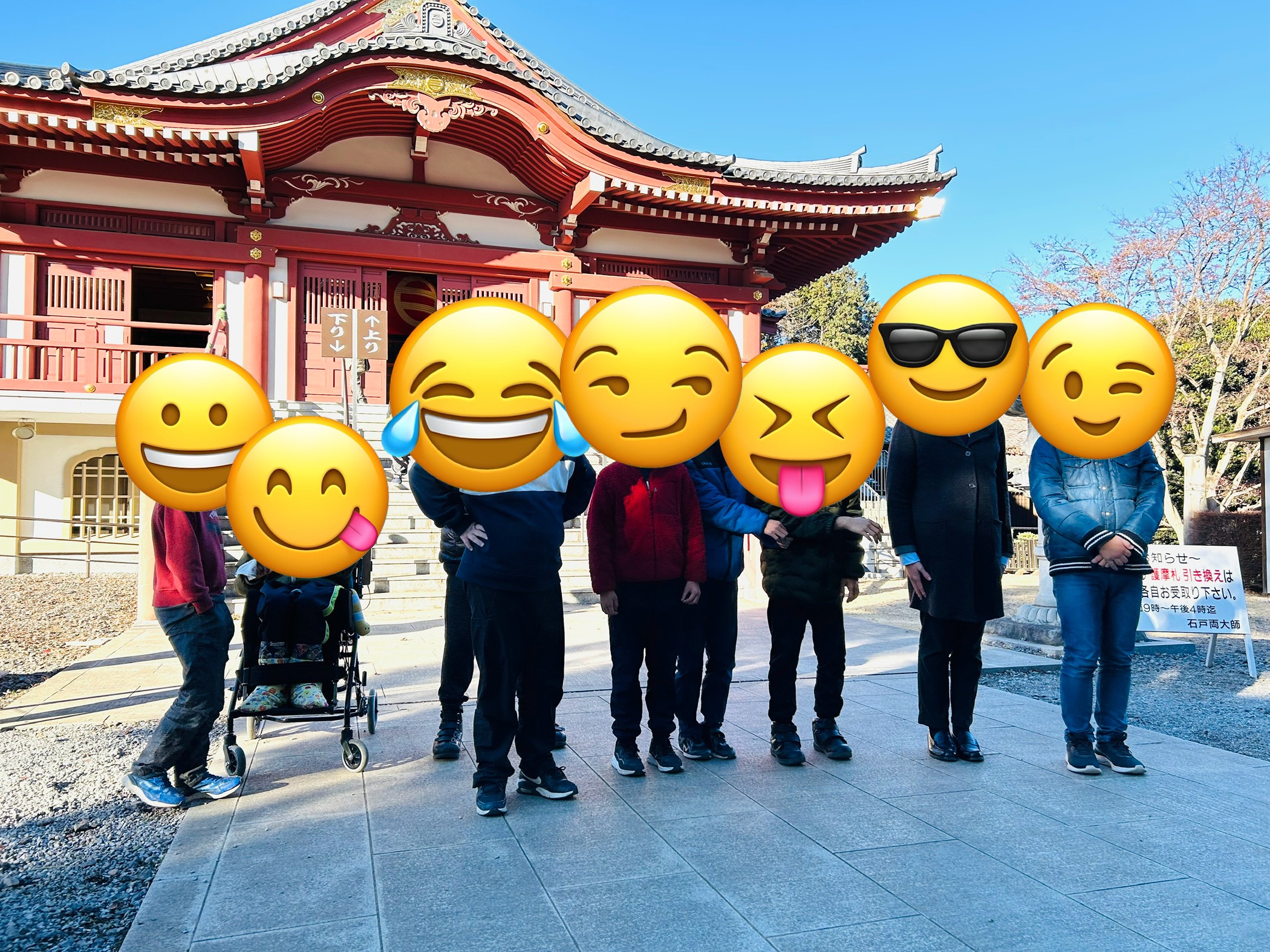 新年明けましておめでとうございます。今年もよろしくお願いします。 本日1月4日は、いろは初めということで今年最初の開所日でした😊年末年始過ごした子どもたちが元気に顔を出してくれました♬そんな今日は午前中はみんなで正月あそびをして盛り上がりつつ、のんびりもしながら過ごしました(*^-^*) 午後からはいろはで毎年恒例の石戸大師へ初詣に行ってきました♪毎年行ってることもあってか、子どもたちもしっかり一礼をしたりすることができました♪ 今年も楽しい一年になりますように😊 -