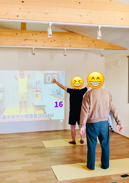 今日は、ストレッチからスタート!最初は、からだ全体の筋肉を痛気持ちいいくらいでやさしく伸ばしていきます。利用者さんのみなさんも、マットの上でゆっくりと自分のペースで気持ちよさそうに伸ばしています♪ 中盤になってくると、少しきつめの体勢で行うものや、腹筋などを多く使うメニューを行っています。 そして、最後は有酸素運動と筋トレを組み合わせた全身を燃やすエクササイズやダンスなどを行っています。途中で息が切れそうなきついメニューもあるのですが、利用者さんの中には、「運動はみんなで一緒... -