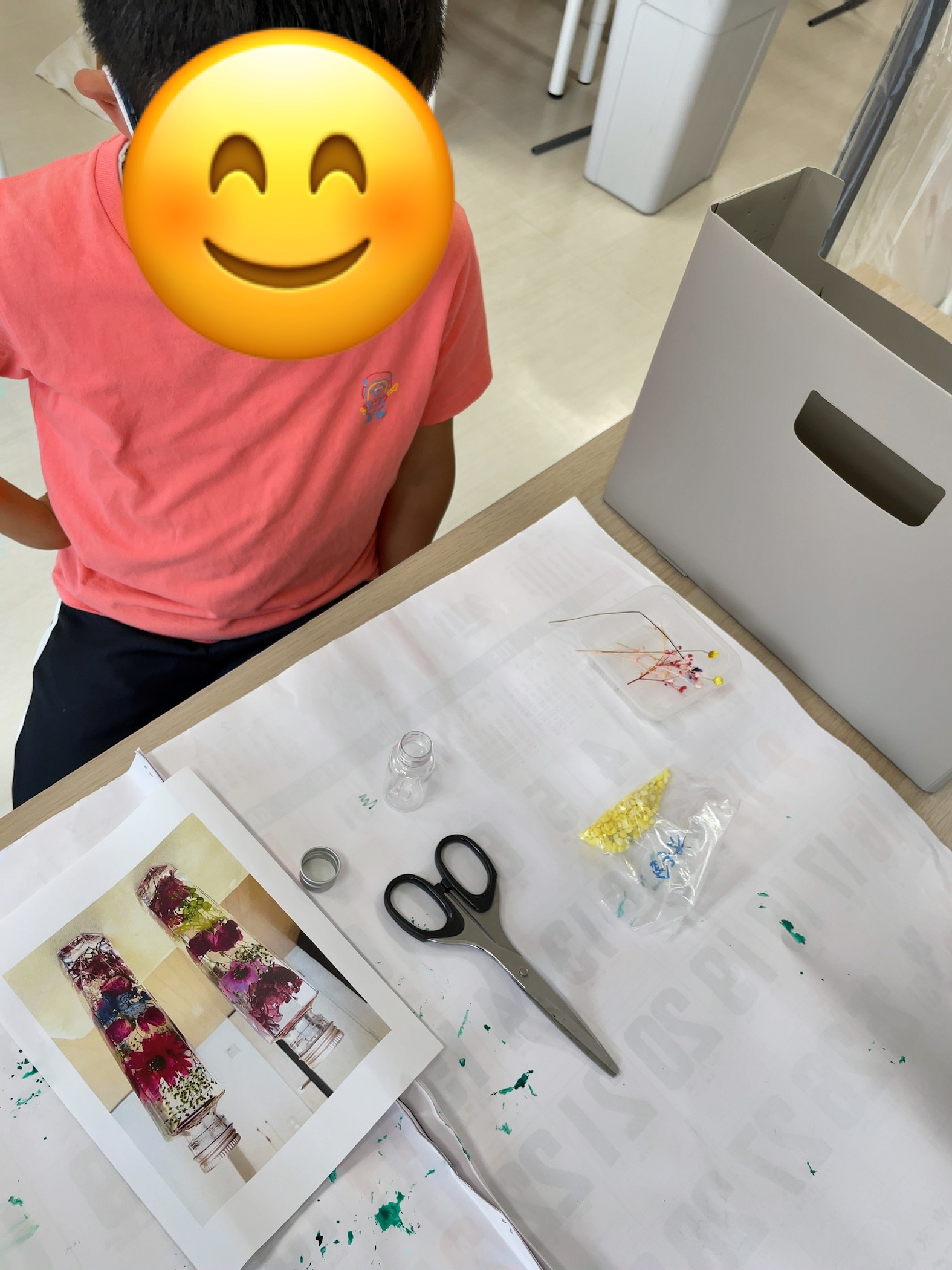 7月はハーバリウムを作ります💐 見本を見ながら、完成をイメージ🧐 それぞれの感性で、小瓶を埋めていきます🫙 バランスを考えながら、切る長さも調整中👏 完成が楽しみだね⭐️ -
