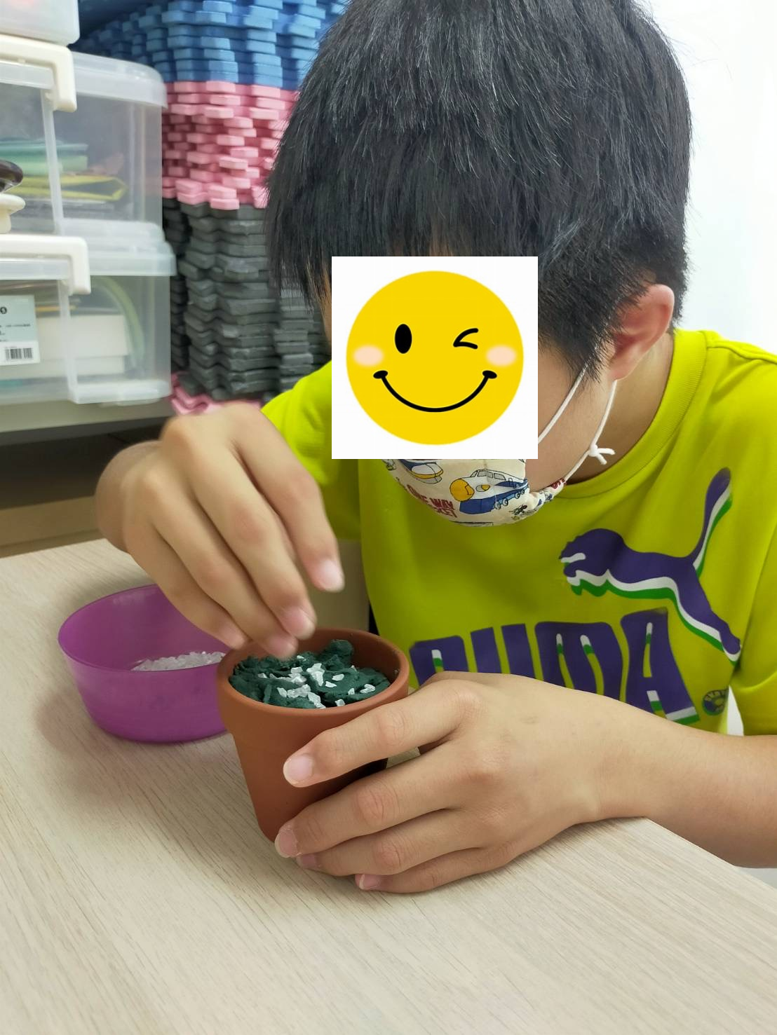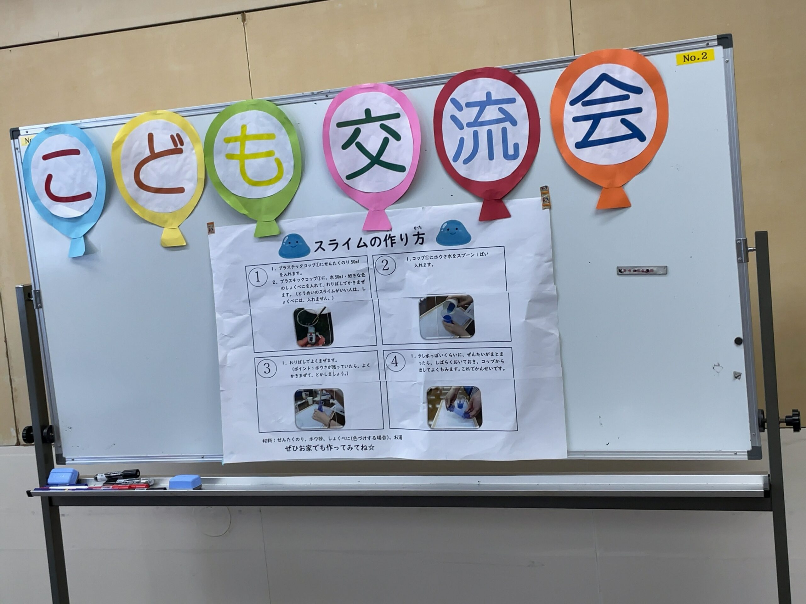 文化センターの会議室を使用して、こども交流会を開催しました♪ いつもとは違う場所で、少々緊張気味の子どもたち🤗 お話をしっかり聞いてから「スライム作り」スタートです✨ 一人一人好きな色を選んで、カラフルなスライムが完成しましたー😊 とても楽しい時間を過ごせました⏰