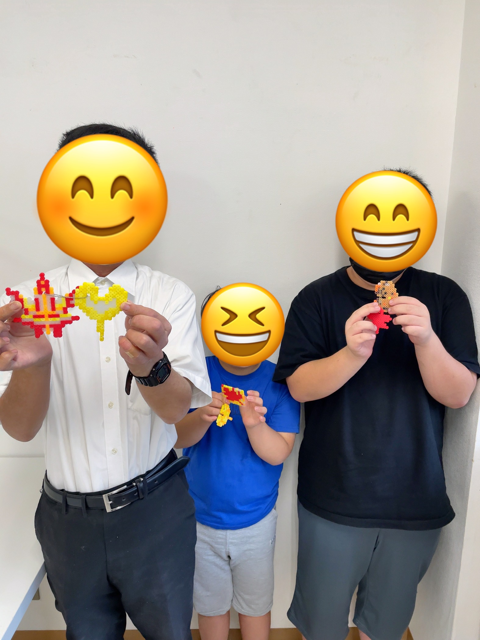 今月の創作はキーホルダー制作‼️ アイロンビーズを使って、イチョウや紅葉のキーホルダーに仕上げました🍁 見本や写真を見て、一つ一つ丁寧に配置していきます🤗 完成〜‼️ みんな上手に出来ました❤️ -