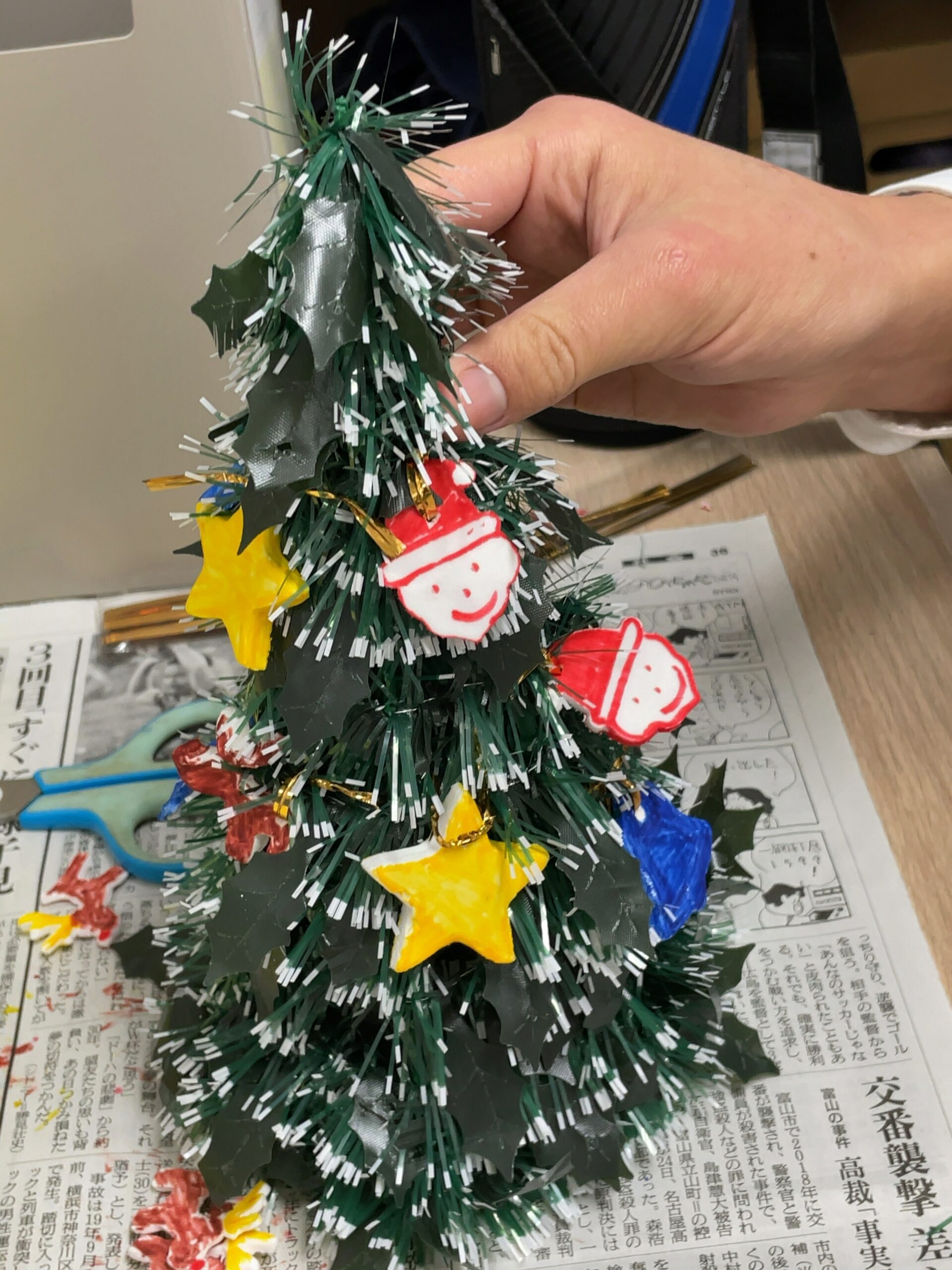 11月の創作は「クリスマスツリー」を作ろう🎄 粘土で型を取り、オーナメントも自分たちで作ります🎅 バランスよく飾り付け✨ サンタさん可愛いね😍 完成〜🎄 クリスマスまであと1ヶ月🎅 お家に飾ってね❤️ -