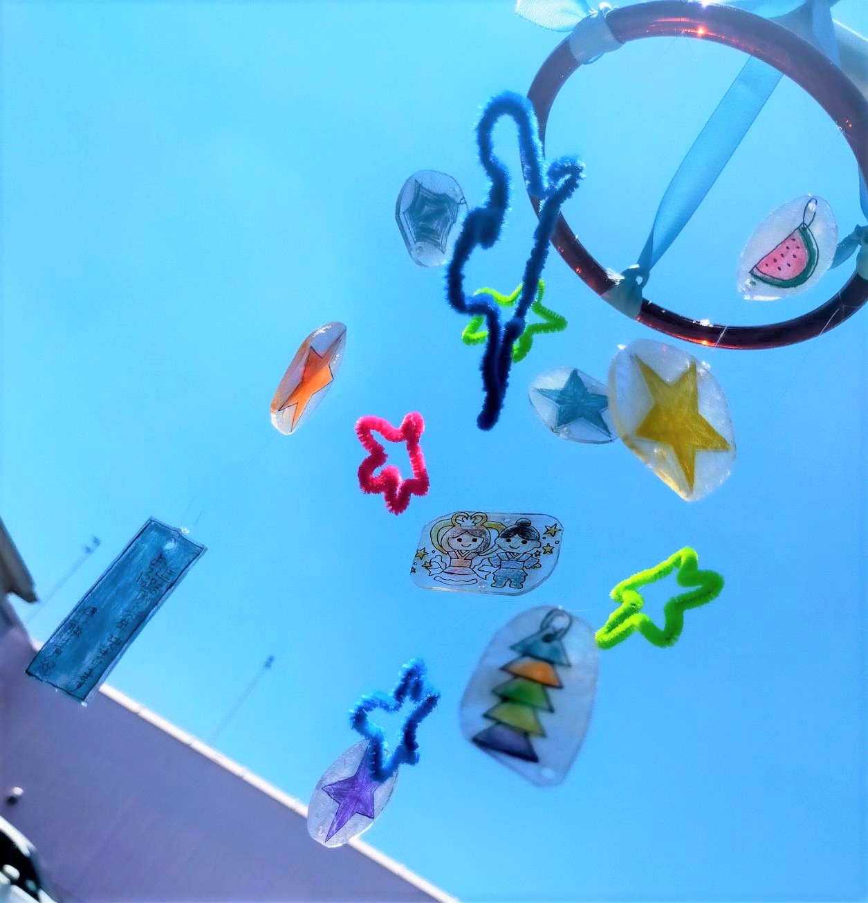 今日から7月となり、7月7日と言えば七夕ですね! こども支援センターいろはでも、創作の『七夕モビール』が完成しました♪ プラバン製の短冊に願いを込めて付けました☆彡 プラバン同士がぶつかると綺麗な音で涼しげな仕上がりになりました(*^-^*) こども支援センターいろは地域イベント『こども交流会』開催予定♪日時:8月2日(火) 14:00~15:30場所:北本市文化センター内容:地域の子どもたちといろはの子どもたちでスライム作り(お土産付き)みんなで夏休みの思い出を作りましょう!!!参加希望の方はQRコードよ... -