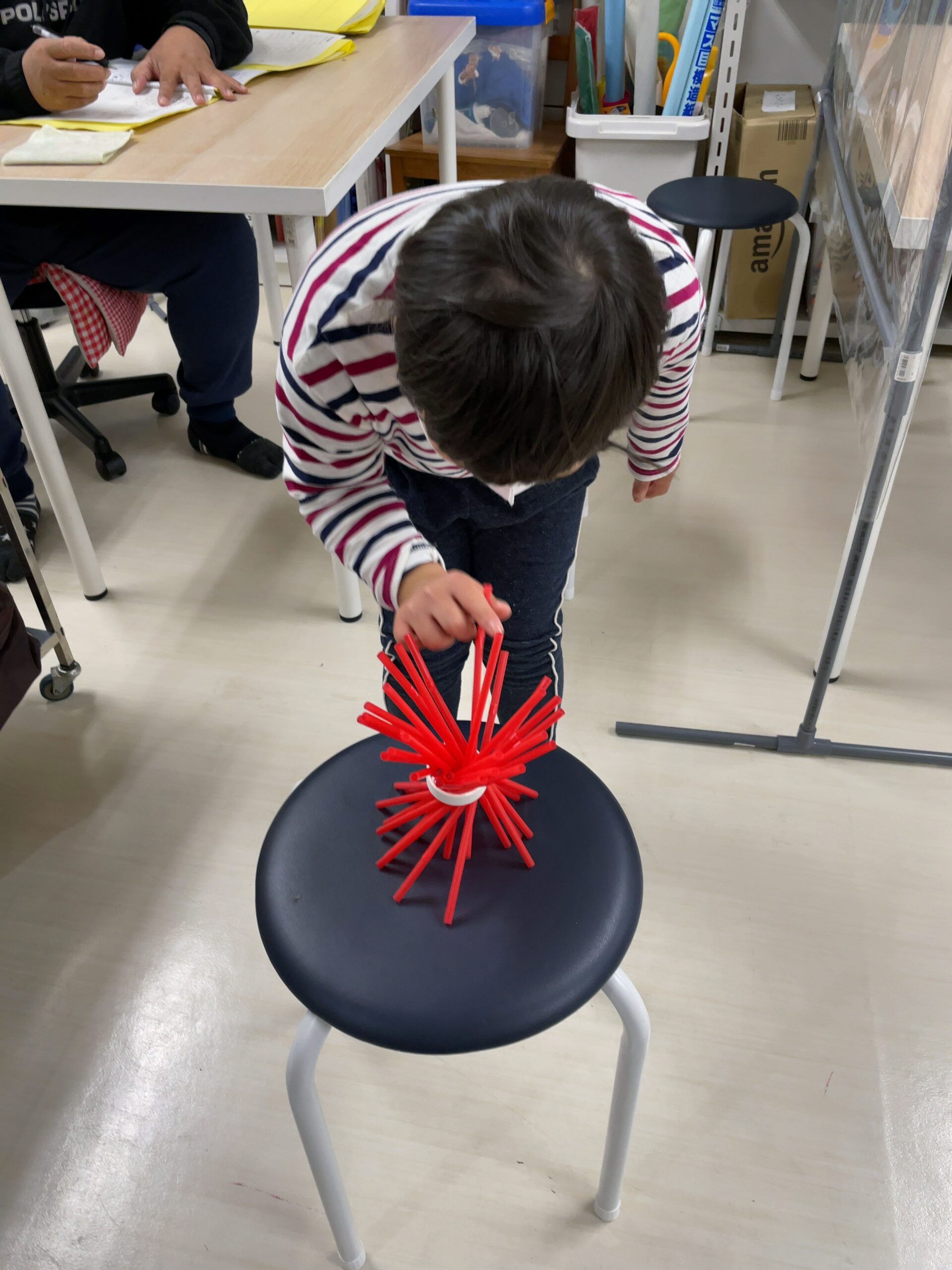 手指を上手にコントロールしながら、ゲームを楽しみました😄 ワクワク、ドキドキ、スリル満点なスティッキーゲームは子どもたちに大人気❤️ 倒れないように、そぉーっとストローを引き抜いてね🤗