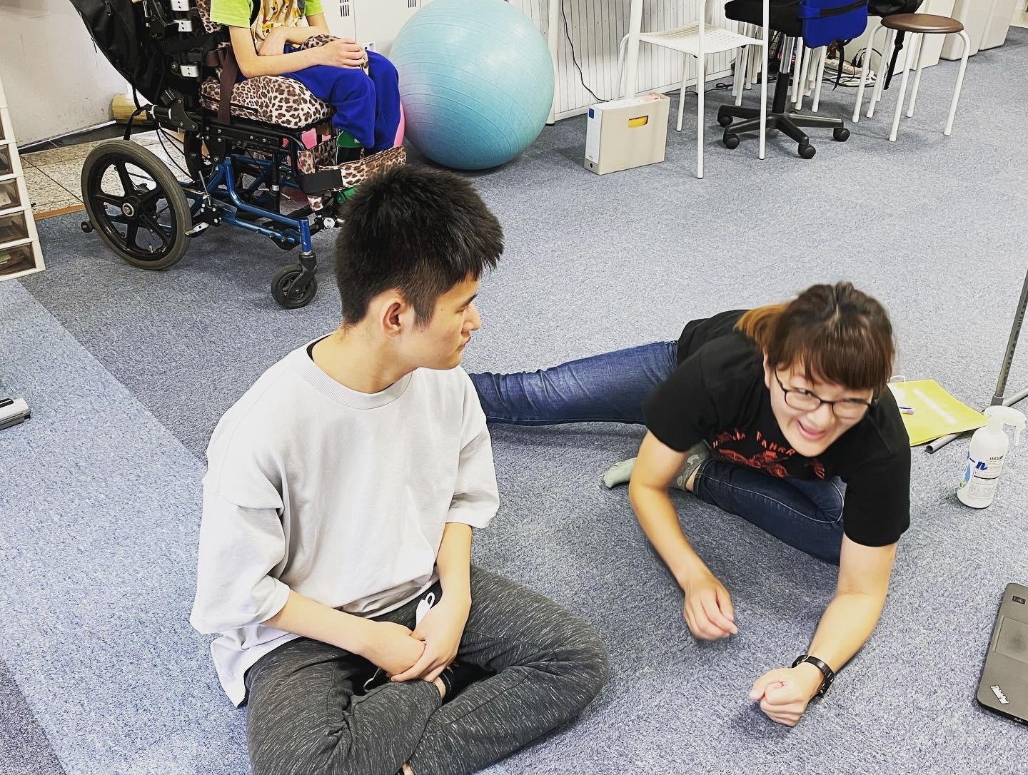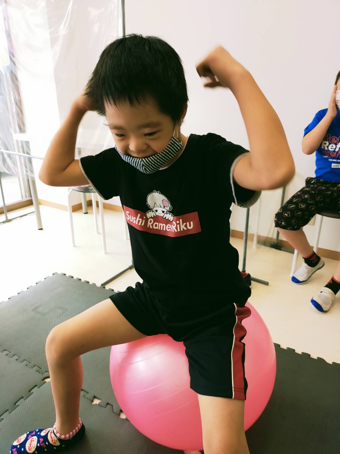 肌寒い日が続いていますが、体調崩していないですか⁉️ 引き続き、感染症予防を行いながら、元気に活動していきます😆 ボーリングゲーム🎳 集中して… バランスボール⚽️ インナーマッスルを鍛えます✨ -