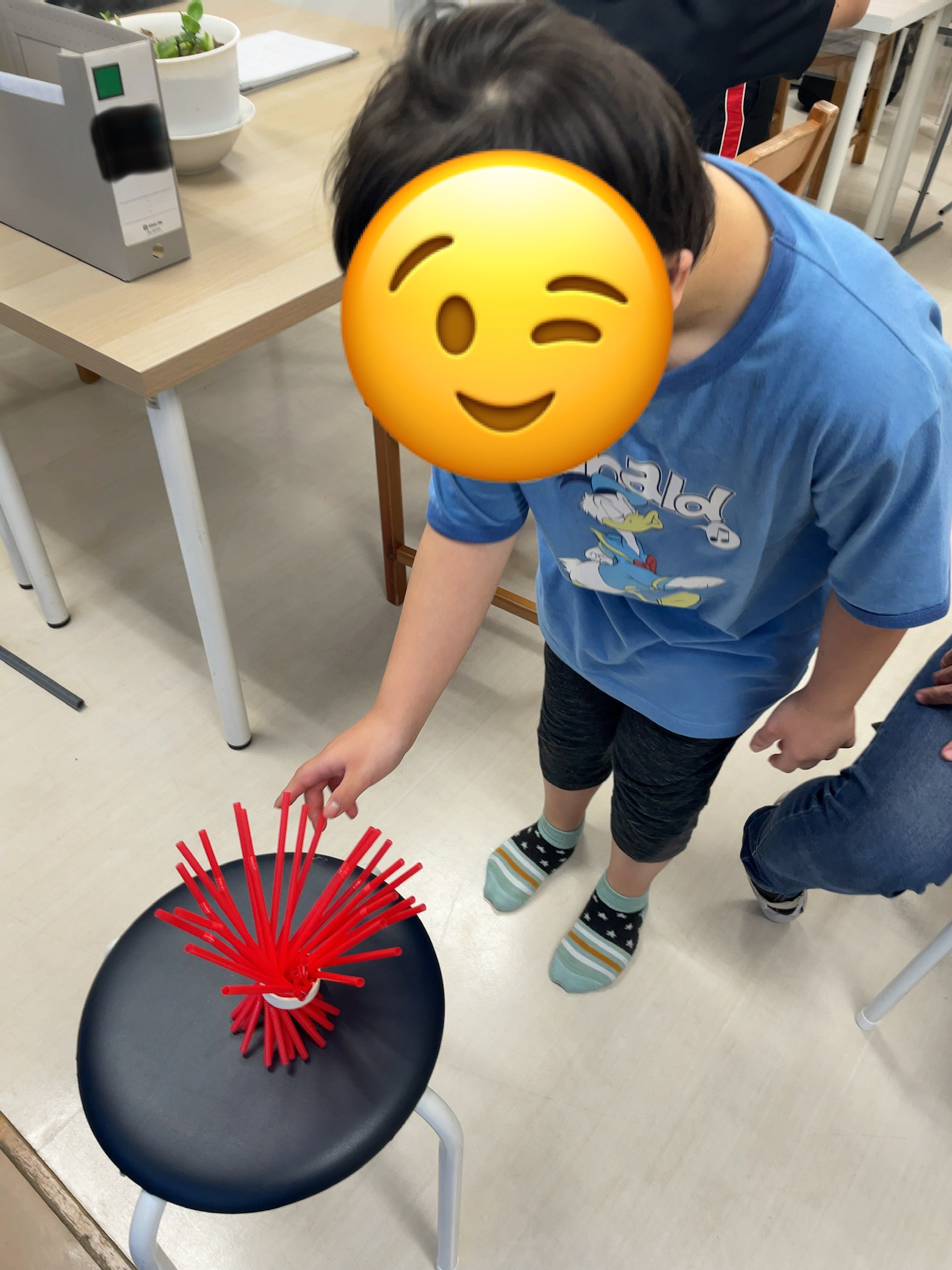 いつもブログを見て頂き、ありがとうございます😊 今月の微細運動は「スティッキーゲーム」 バランスを取りながら、倒れないように…ストローが上手に取れるかな⁉️ -
