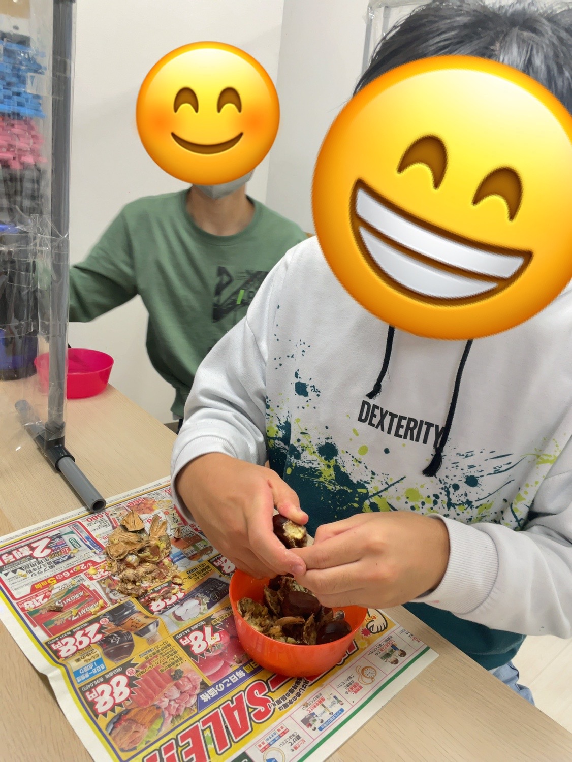 いつもブログを見て頂き、ありがとうございます😊 ハロウィン制作も完成に近づいて来ました〜🎃 今日はおやつに、栗を頂いたので、みんなで美味しく頂きました🌰 秋は美味しい食べ物が沢山あって嬉しいね❤️ -