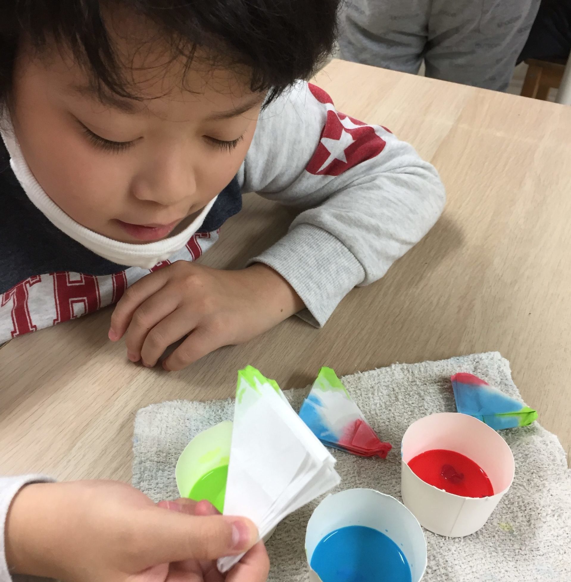 今日は早帰りの学校があったので、凧制作の前にお勉強✏️ みんなが下校したら、凧制作スタート🪁 今日は第2回目‼️ 和紙での連凧にチャレンジするため、和紙染しました😄 どんな色に仕上がるか楽しみだね🎶 -