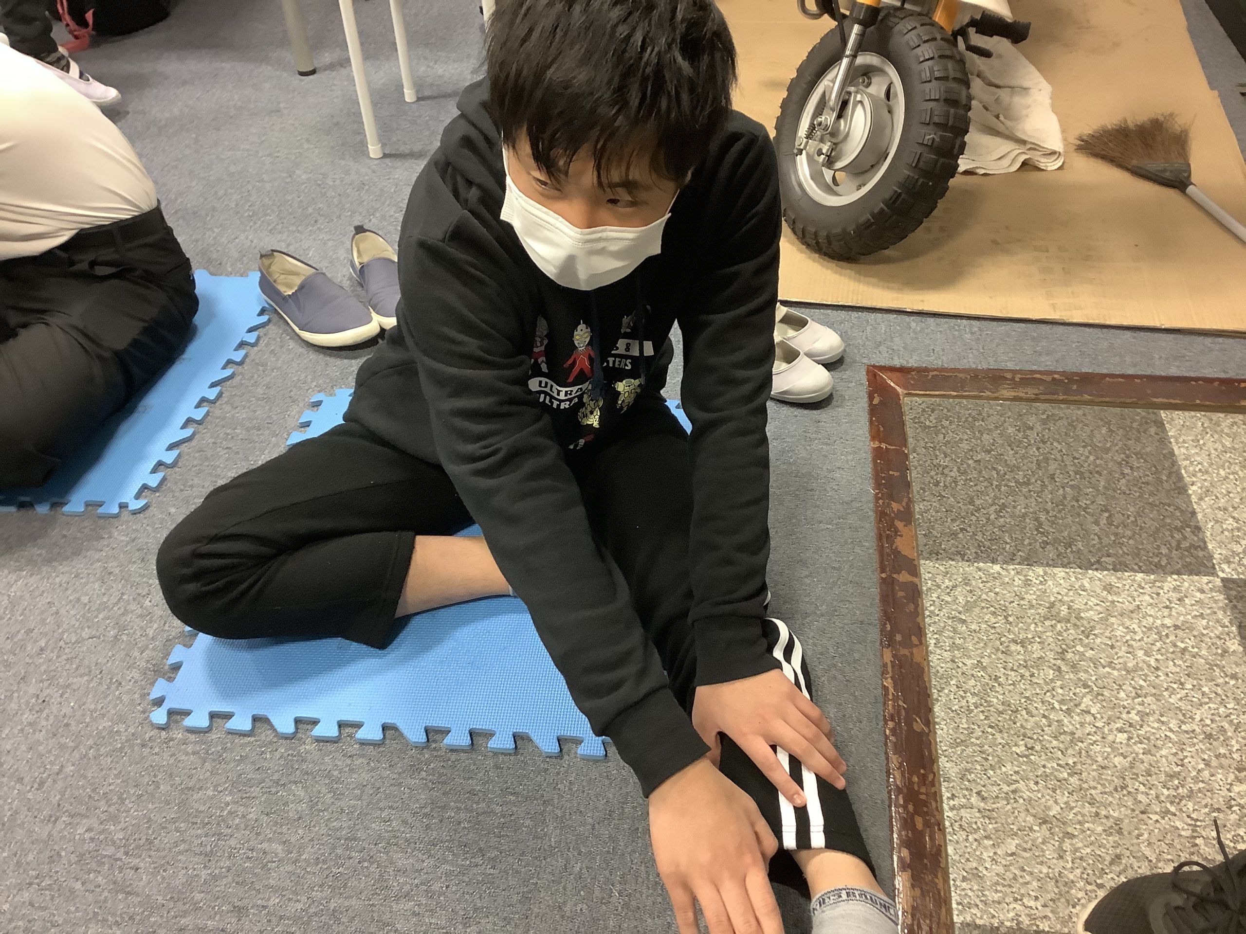 今日は学習の後にストレッチを行いました。 長い時間勉強をしていると体が硬くなってしまうことがあります。そんな時はストレッチをして、心と体をリフレッシュしてあげることが大切です。 ふくらはぎをゆっくりと伸ばします。 腰のあたりも伸ばしていきました。 なかなか冬になると体を動かす機会も減ってくると思いますので、室内でもしっかりと運動をしていきましょう。 -